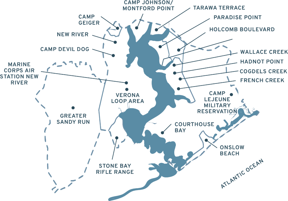 Locations of Camp Lejeune Toxic Drinking Water